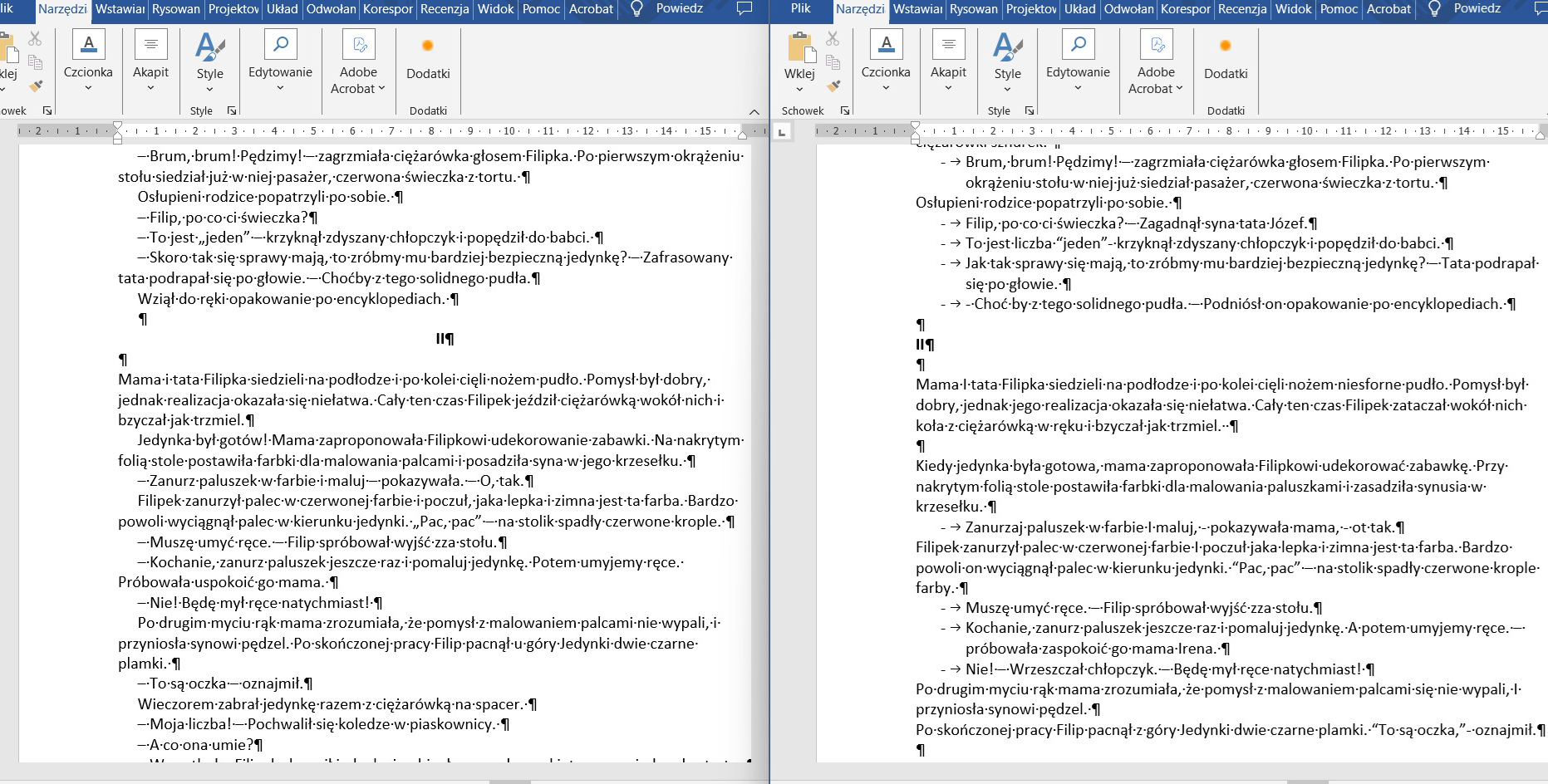 Adiustację tekstu najlepiej wykonywać w plikach Word. Można też w PDF-ie za pomocą komentarzy albo ustalonych znaków korektorskich, ale to praca trudniejsza dla korekty i składu. Uwagi dotyczą wyglądu tekstu, dzielenia go na logiczne całości, co jest ważne dla późniejszego składu.